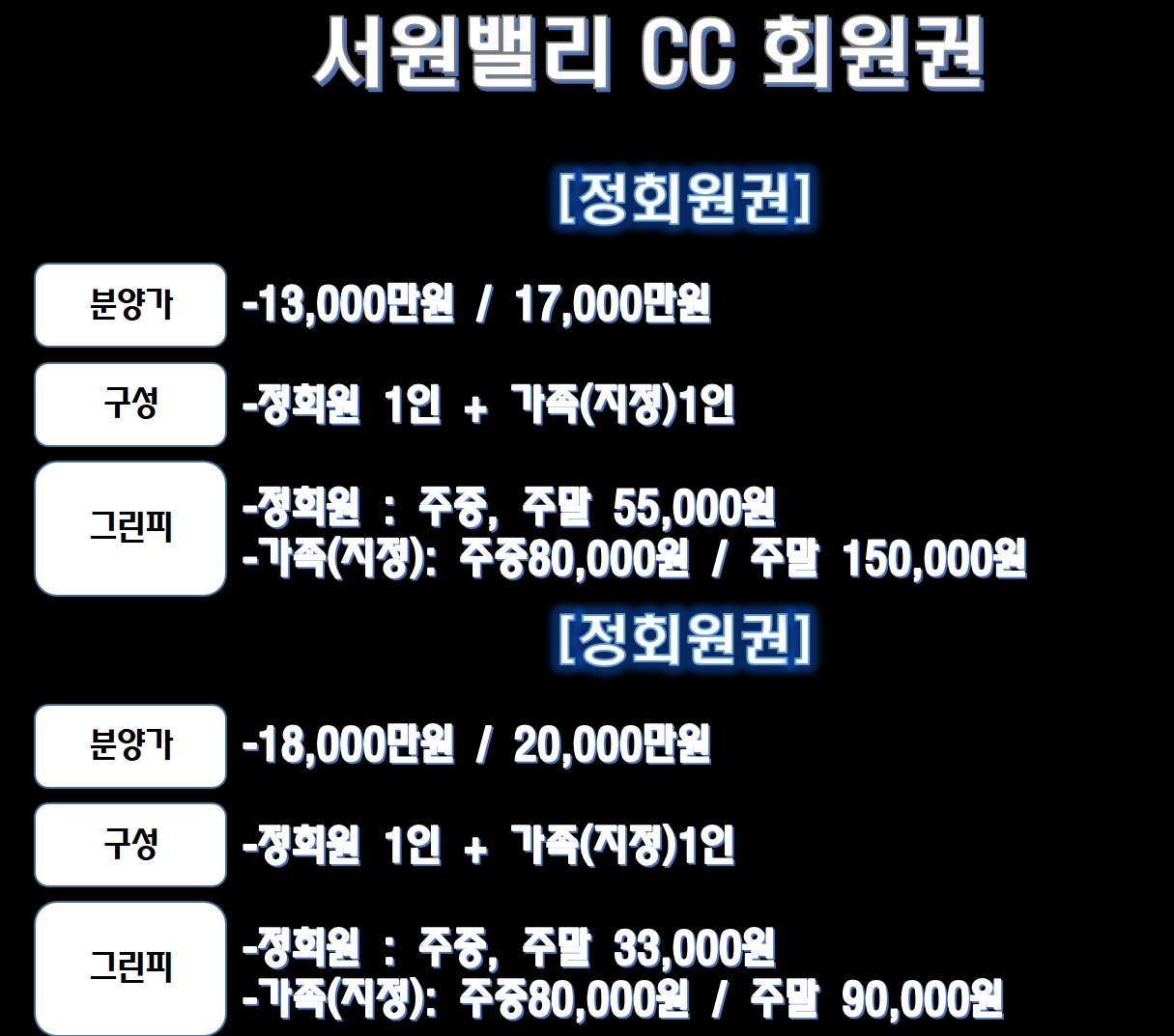 -서원밸리CC 정회원권 2억 5천 분양가는 지정회원이 2명입니다