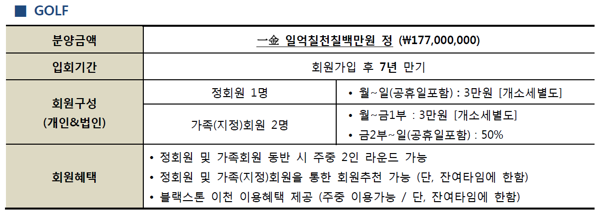 * 홀수 : 회원제 18홀 + 퍼블릭 9홀