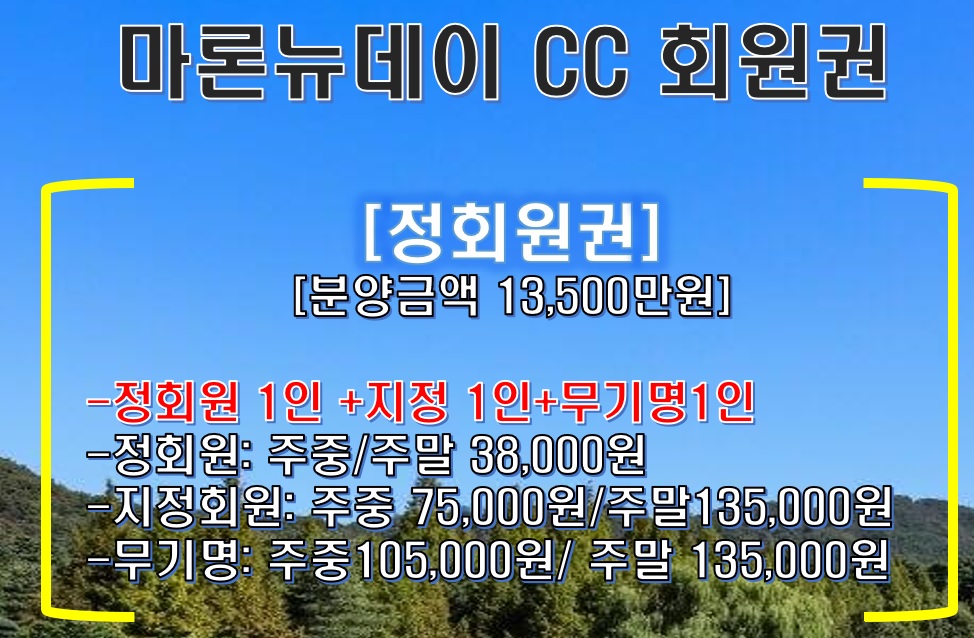 그럼 지금부터 마론뉴데이CC 회원권 정보 알아보겠습니다!
