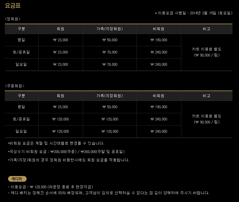 #청평마이다스cc이용요금 안내입니다.