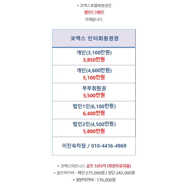 | *그랜드인터컨티넨탈서울파르나스,그랜드인터호텔회원권,메트로폴리탄피트니스개인,법인,부부회원권시세입니다. (0) | 2020.04.20 |