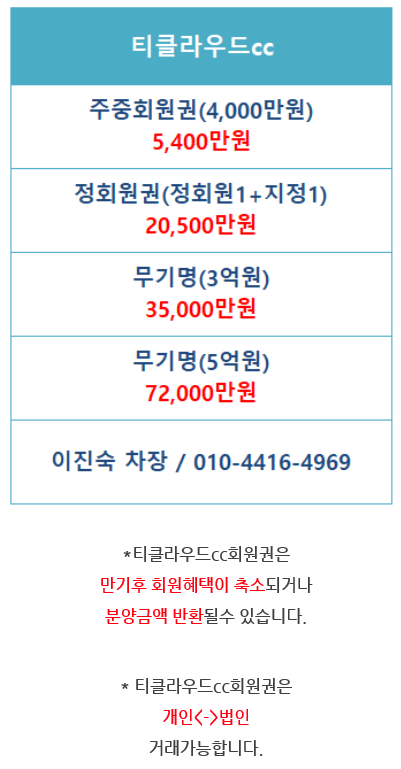 #티클라우드cc무기명회원권 입니다.