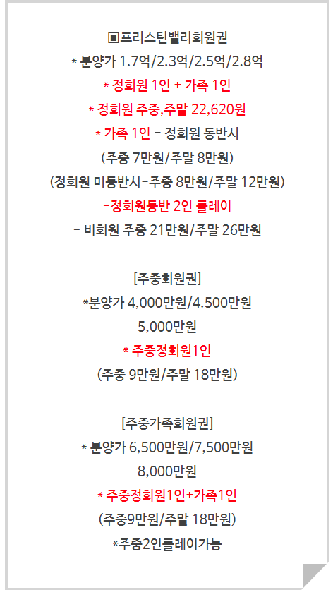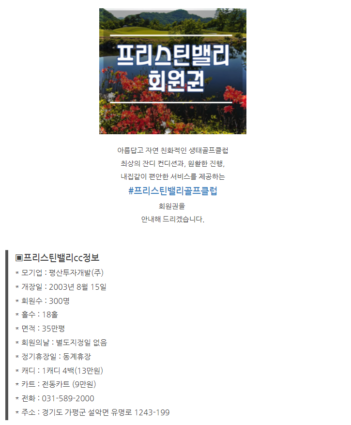 프리스틴밸리회원권cc 정회원권 매매안내입니다.