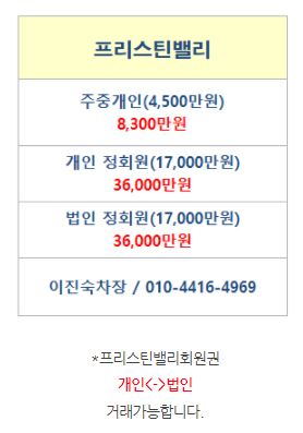 프리스틴밸리cc회원권시세 예약,거래방법안내!!