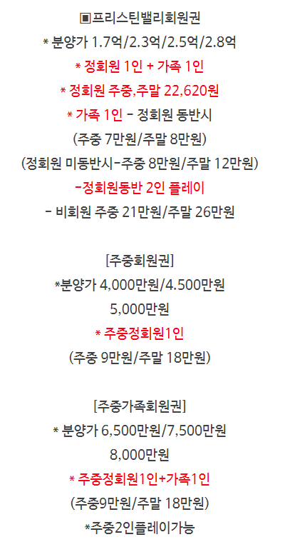 프리스틴밸리cc회원권 개인주중,법인,가족회원권안내입니다.