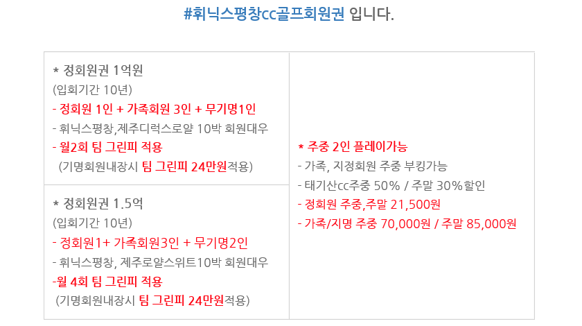 | *엘리시안강촌cc개인,법인,무기명골프회원권시세/엘리시안강촌컨트리클럽골프회원권혜택안내입니다. (0) | 2020.08.11 |