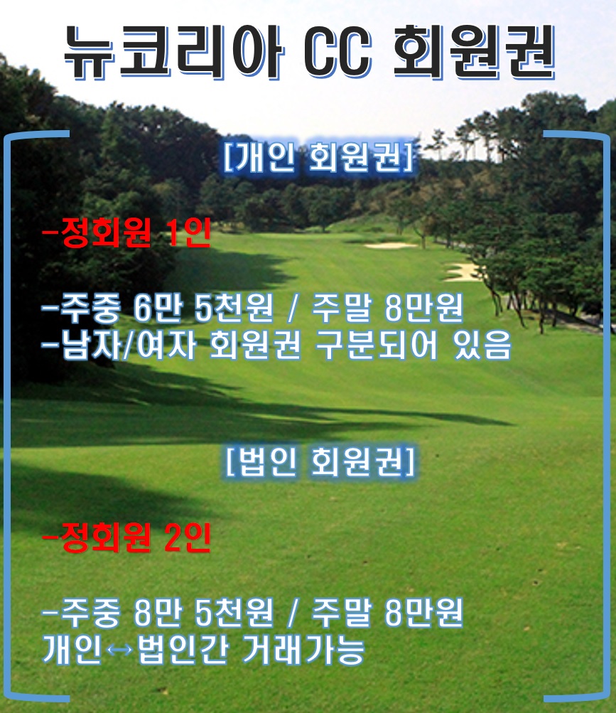 그럼 지금부터 뉴코리아CC 회원권 정보 알아볼까요?