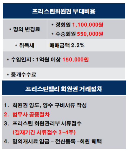2인플레이가능 프리스틴밸리 주중,정회원권혜택비교 입니다.