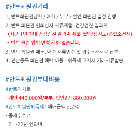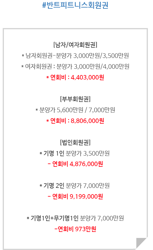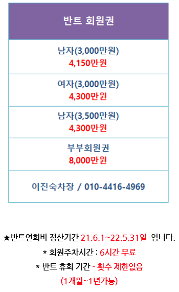 21년연회비 반트스포츠클럽 반트회원권 반트여자 부부 남자 회원권 안내입니다.