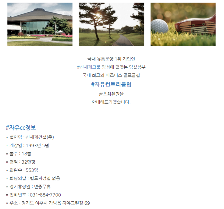 | 부킹잘되는 골프장 신원cc회원권 신원cc법인회원권안내입니다. (0) | 2021.07.20 |
