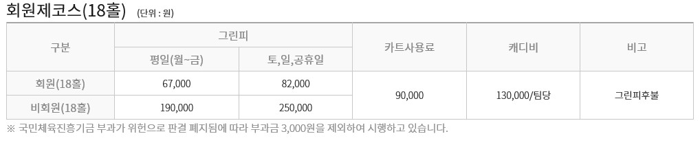-태광CC 그린피 및 기타요금