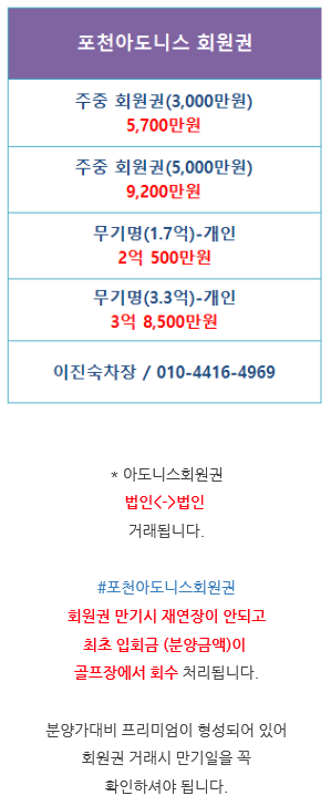 | 법인2인회원대우 한성cc회원권 한성컨트리클럽법인회원권혜택,회원권시세안내입니다. (0) | 2021.04.30 |