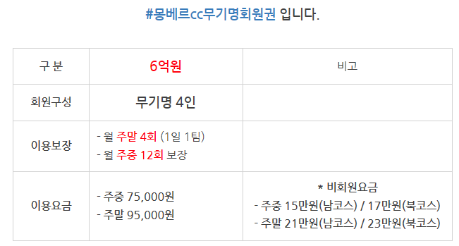 | *4인법인무기명골프회원권/몽베르cc4인법인무기명회원권혜택안내입니다. (0) | 2020.06.04 |