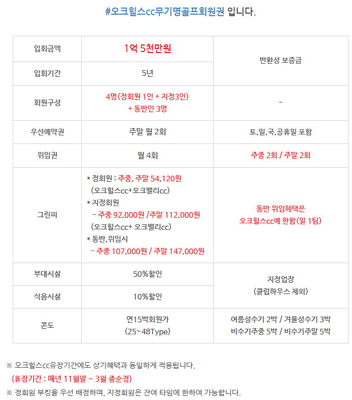 | *오크힐스cc4인무기명골프회원권-오크힐스컨트리클럽주중무기명골프회원권안내입니다. (0) | 2020.04.13 |