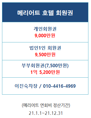 | JW메리어트호텔회원권 마르퀴스피트니스회원권 메리어트호텔회원권시세안내입니다. (0) | 2021.07.27 |